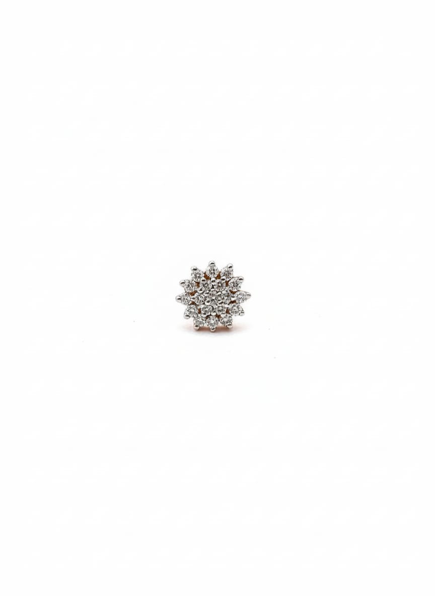 Introducing our exquisite diamond cluster nose pin, a stunning piece of jewelry that combines elegance and innovation. Designed specifically for those who appreciate fine craftsmanship, this nose pin features a sophisticated cluster setting, expertly crafted to maximize sparkle. This innovative setting creates the illusion of a much larger single diamond, ensuring you radiate elegance with every wear.