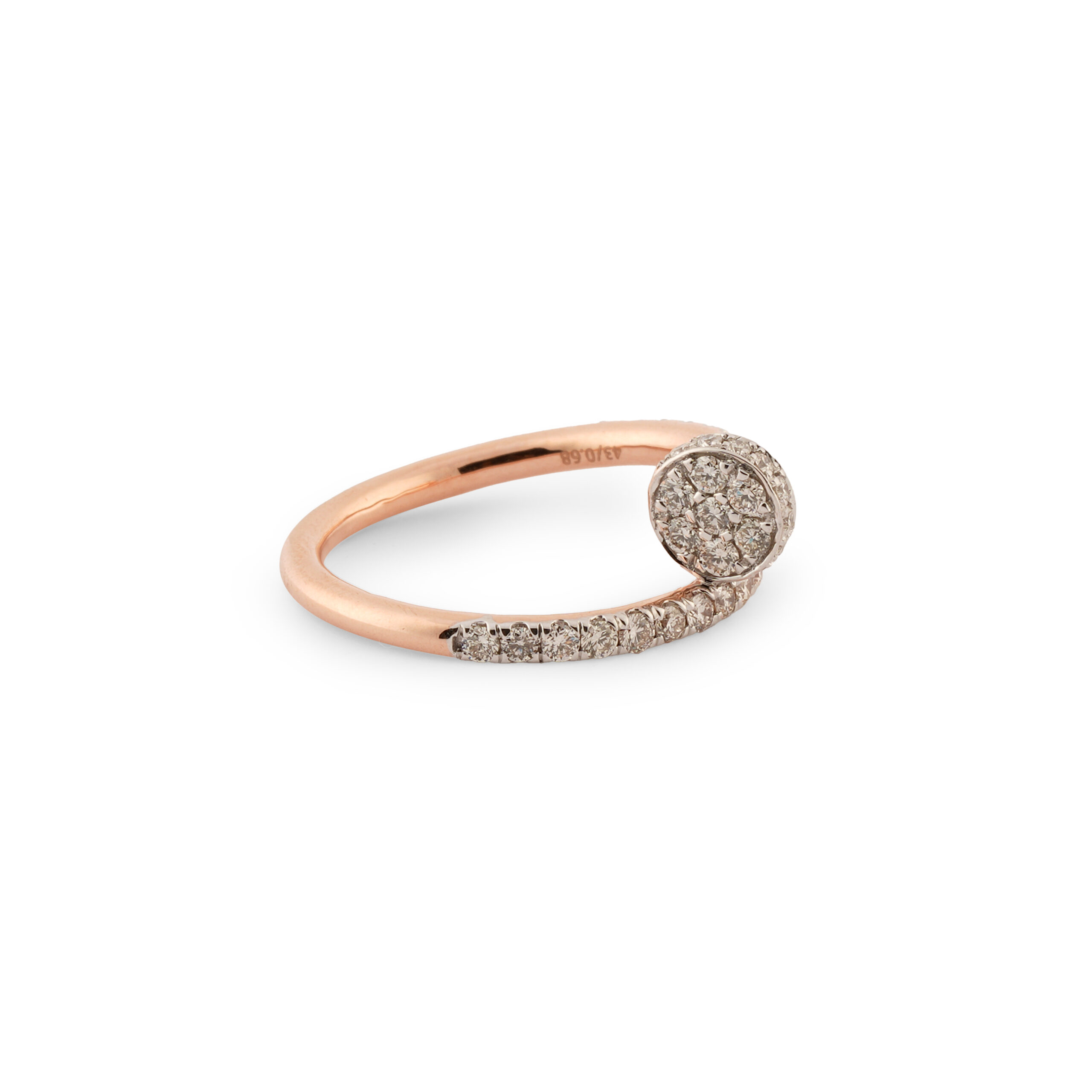 Step into the world of contemporary elegance with this exceptional ring that seamlessly blends boldness and sophistication. Crafted with an open-wrap design, this piece is a true testament to modern jewelry innovation. Featuring two rows of meticulously pavé-set diamonds on a warm rose gold band, it offers a striking yet refined aesthetic that is perfect for special occasions or elevating everyday style.